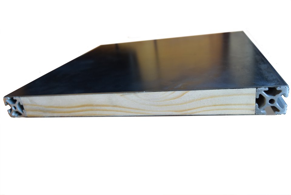 Left to itself, the torsion box structure is traditionally left empty. Instead of being left empty the empty spaces inside the torsion box structure grids are filled with rigid foam insulation, which gives the Sing Insulated Aluminum panels their insulation R value and unparalleled shear strength. The substructure is then sandwiched between two aluminum stress skins and laminated with formaldehyde-free glue, to form an insulated aluminum panel which is stronger than steel (660 PSI) pound for pound.