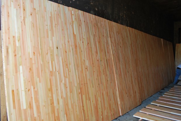 - Large engineered plywood w/Port Orford 1/8 inch wood stave as butcher block 5 ft x 10 ft x 2.25 in