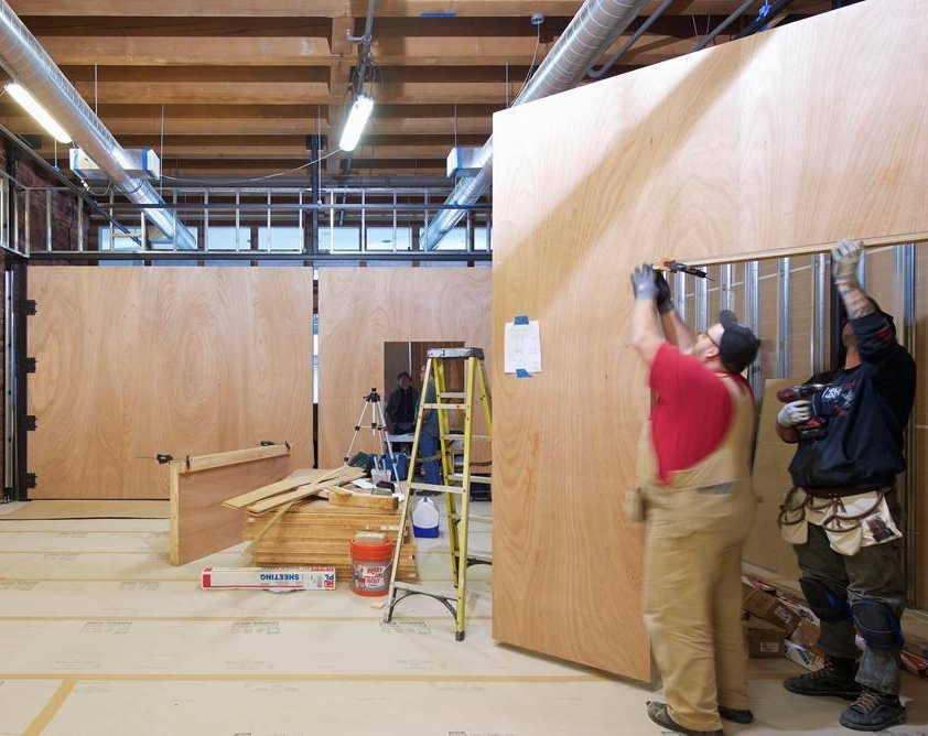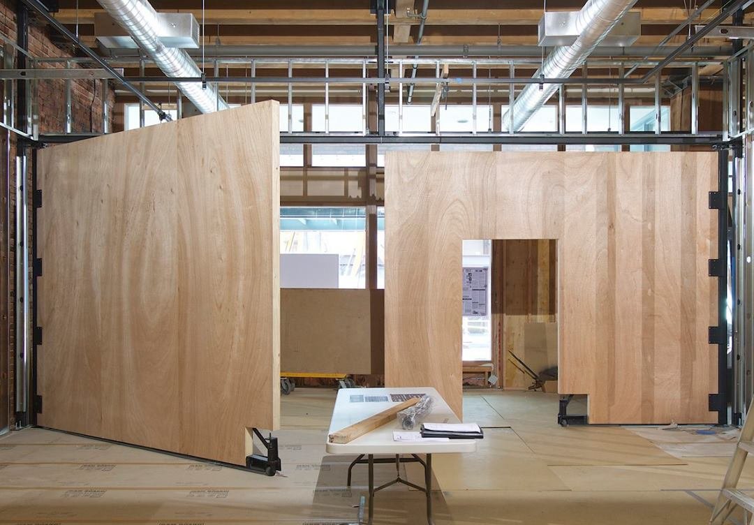 A great example is the 10×12 double pivot doors at the Center for Architecture & Design in Seattle. Each door is 12 feet wide and 5 inches thick, opening to reveal 23 feet of access. These doors also include a man door for daily use, so you don’t need to open the full pivot door every time.