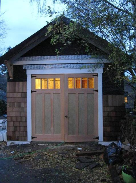 # 3 - High-Style Door: This is for the homeowner who wants to make a statement about their home, it says I can have style and function without paying an extravagant price. Just cover door with your choice of wood planking and trim over the back and front of our economy door have some windows installed and then you have carriage doors that are economical but look expensive and nobody knows how affordable they were except for you.